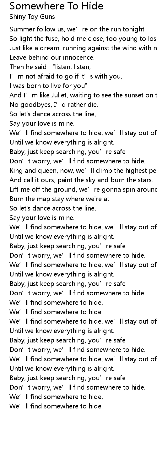 | We' ll find somewhere to hide, | |