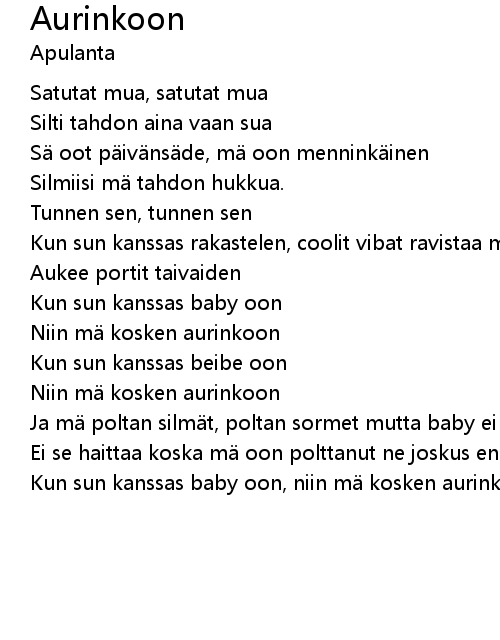 | Kun sun kanssas baby oon, niin m kosken aurinkoon... |