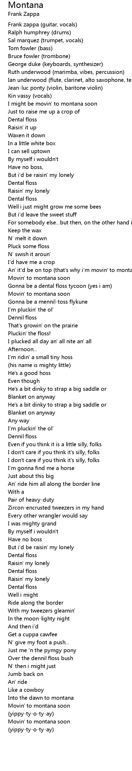 Frank zappa (guitar, vocals) |