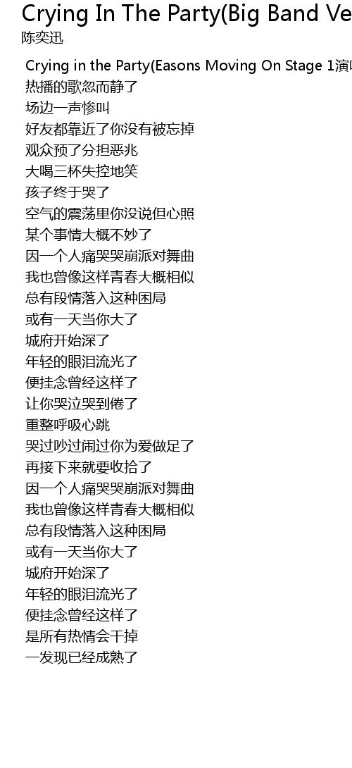 | [0-1:44.740] | Crying in the Party(Easons Moving On Stage 1演唱会) |