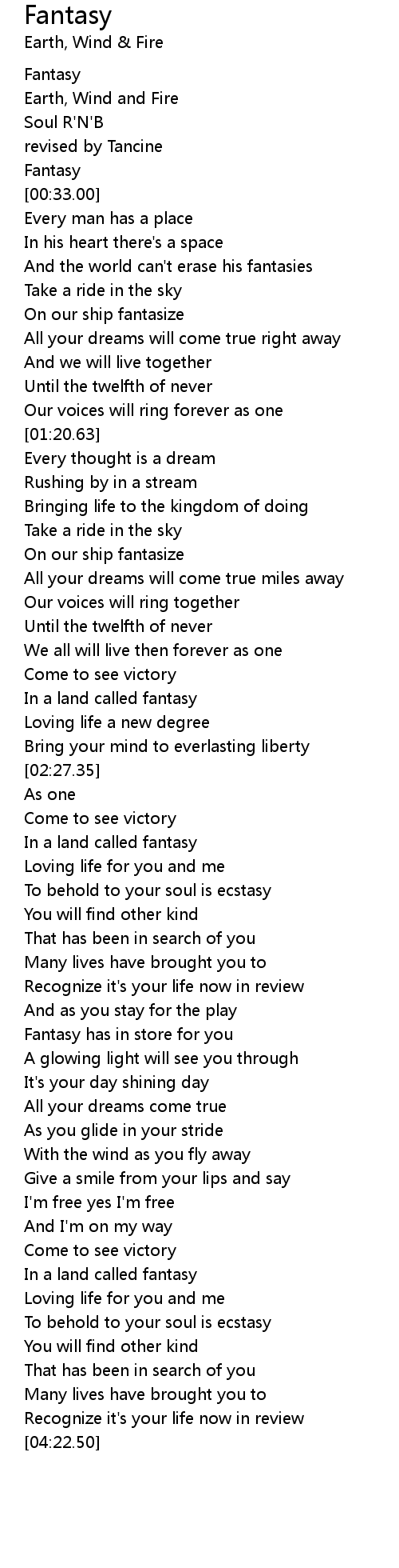 Fantasy 歌词