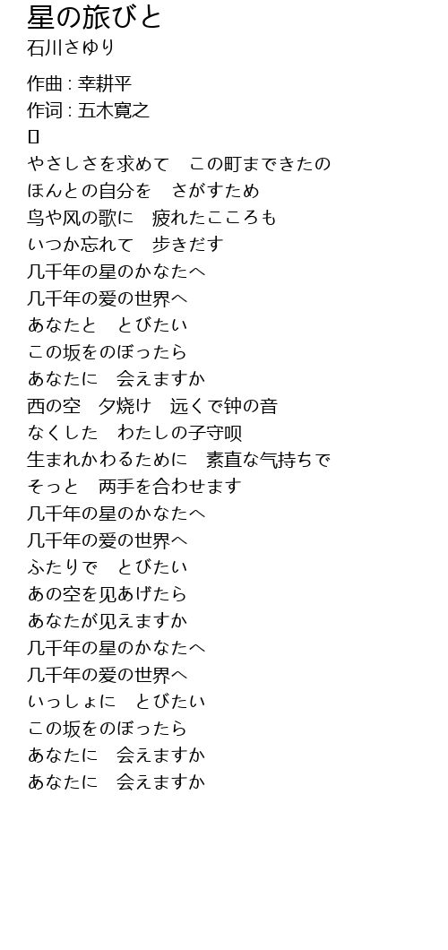 | 歌曲 | 星の旅びと |