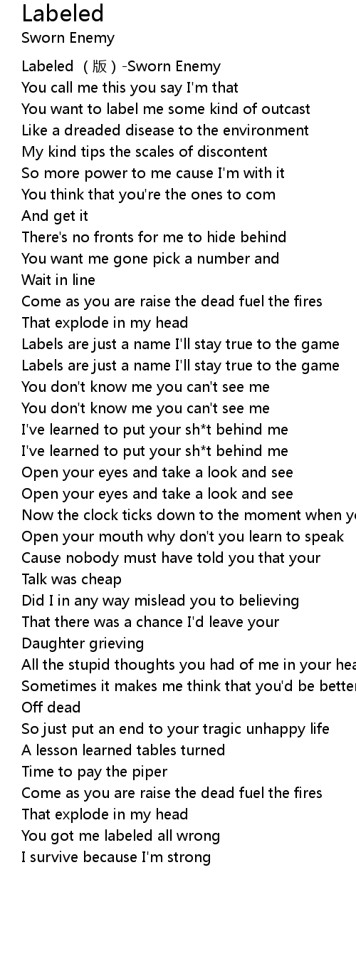 | [00:00.00] | Labeled (版)-Sworn Enemy |