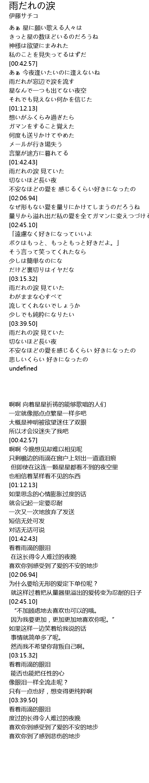 | [00:53.34] | 雨だれが窓辺で涙を流す |