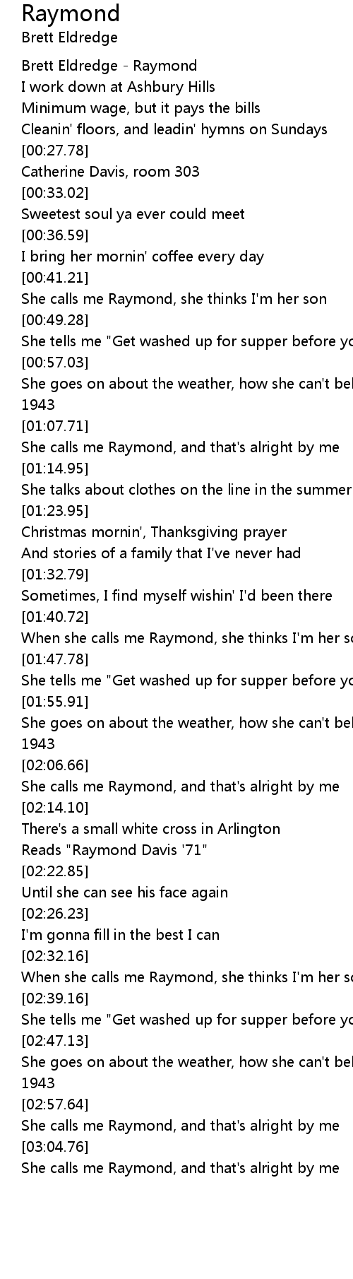 [00:43.15] She calls me Raymond, she thinks I'm her son