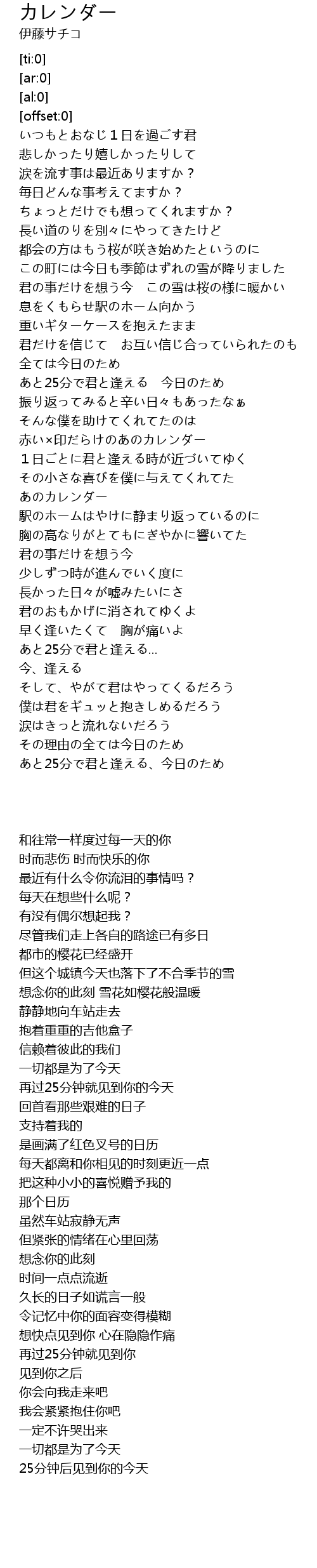 | [03:11.57] | 赤い×印だらけのあのカレンダー |