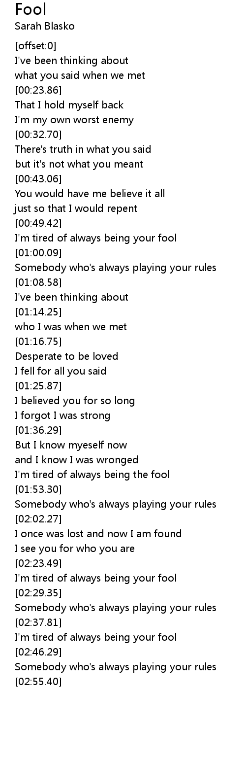 I'm tired of always being the fool |