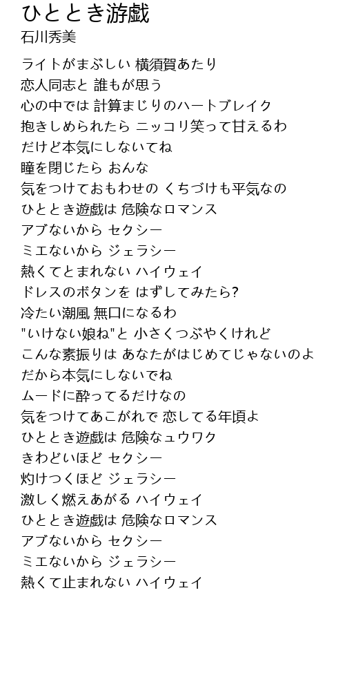 | [03:24.242] | ひととき遊戯は 危険なロマンス |
