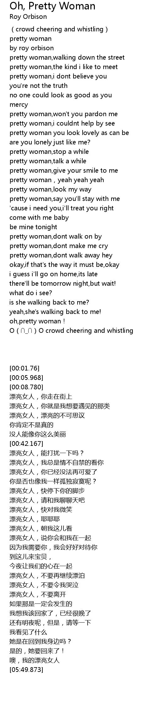 | [02:05.379] | pretty woman, dont walk away hey |