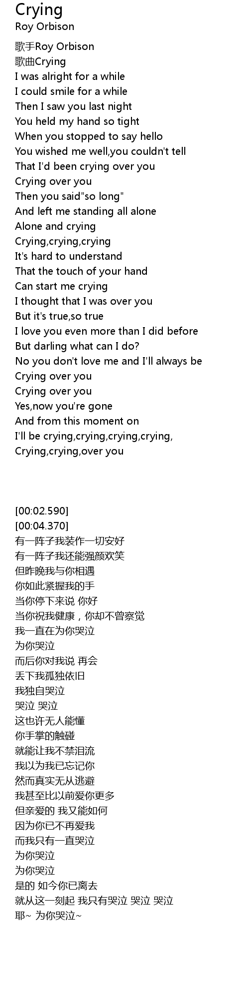 | [02:05.374] | I'll be crying,crying,crying,crying, |