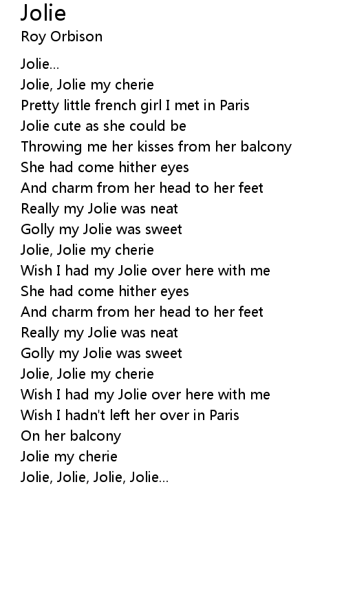 Jolie, Jolie my cherie |