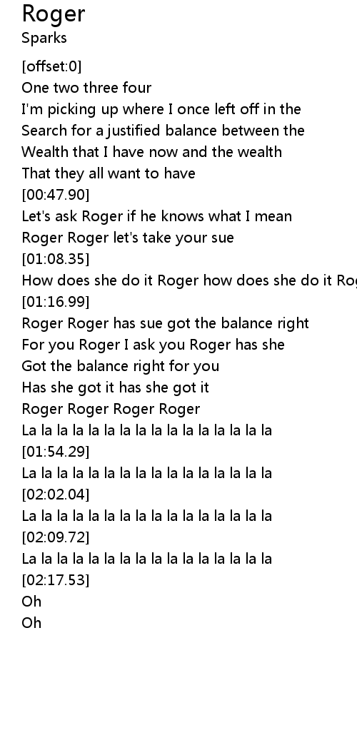 [01:11.22] How does she do it Roger how does she do it Roger how