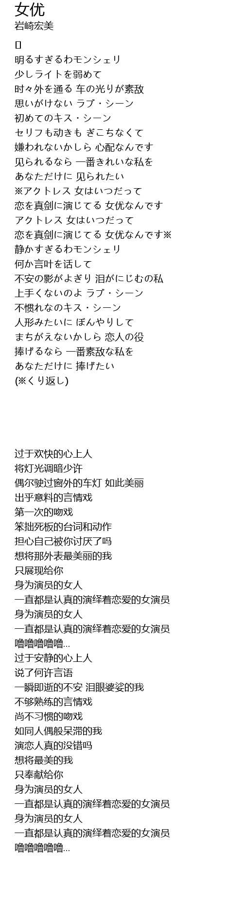 | [03:25.00] | 一直都是认真的演绎着恋爱的女演员 |