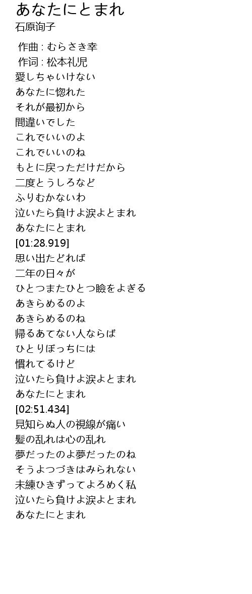 | [03:38.784] | 夢だったのよ夢だったのね |