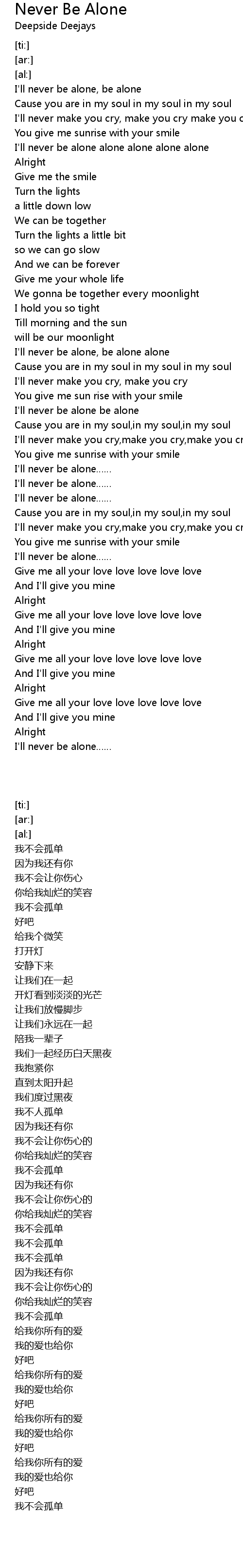 | [00:32.96] | I' ll never be alone alone alone alone alone |