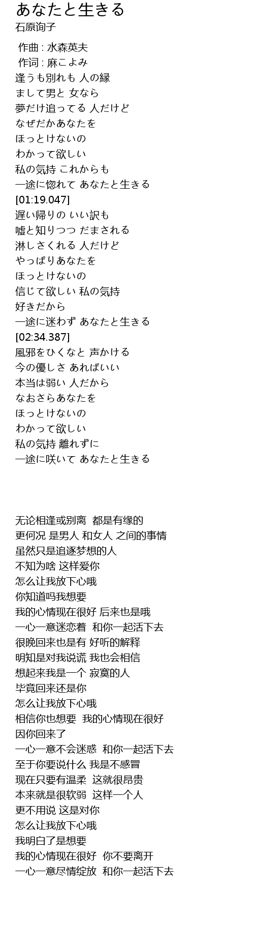 | [03:47.161] | 一途に咲いて あなたと生きる |