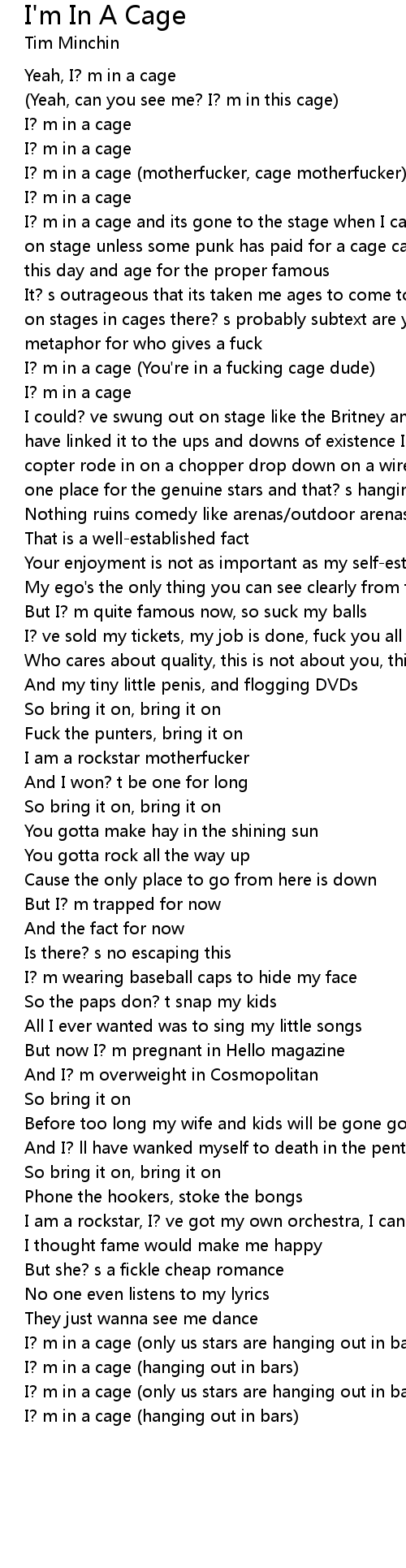 I? m in a cage (You're in a fucking cage dude)