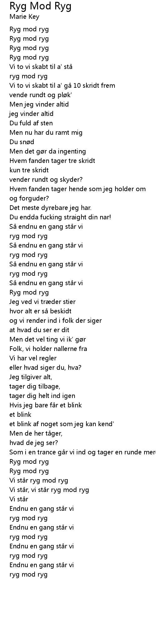 | 歌曲 | Ryg Mod Ryg |