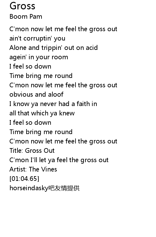 | [00:58.13] | C'mon I'll let ya feel the gross out |
