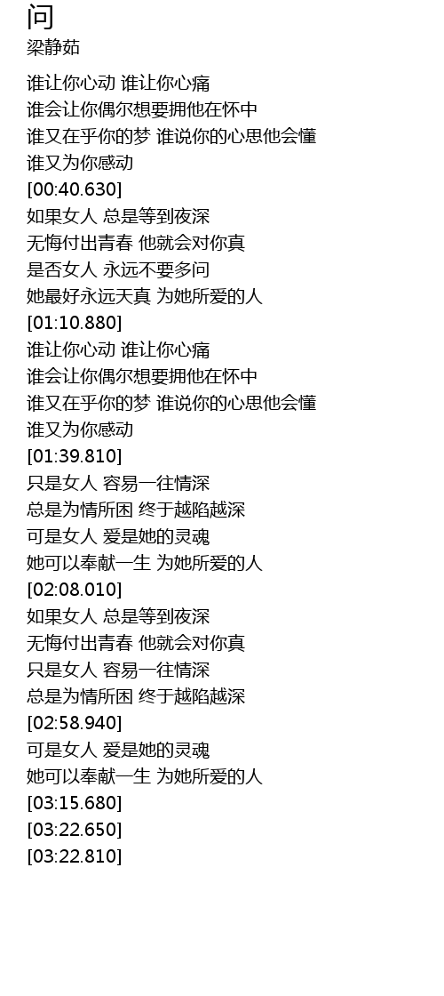 | [00:56.780] | 是否女人 永远不要多问 |