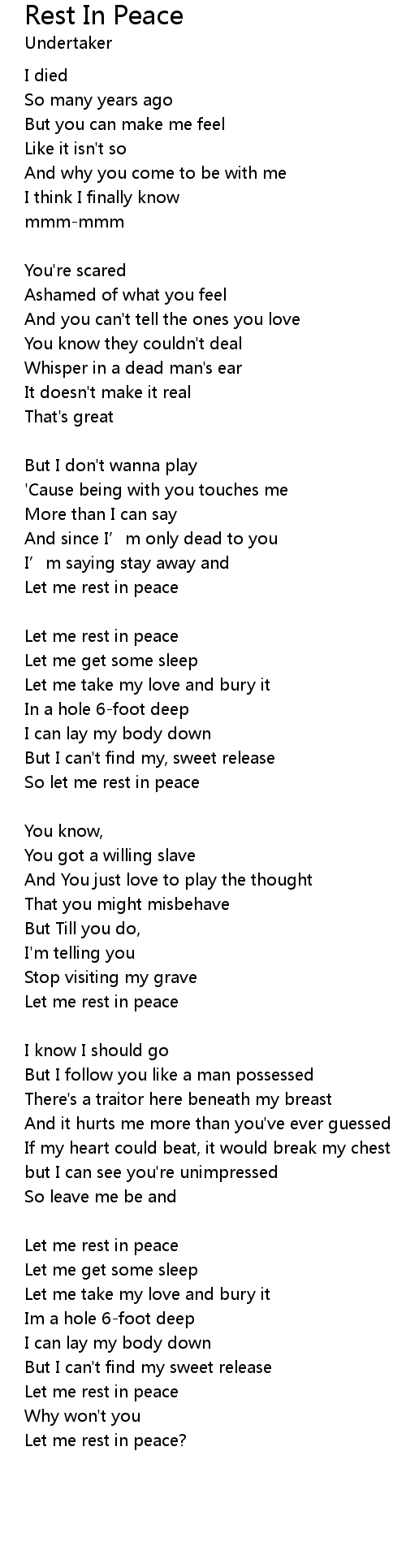 | Let me rest in peace | |