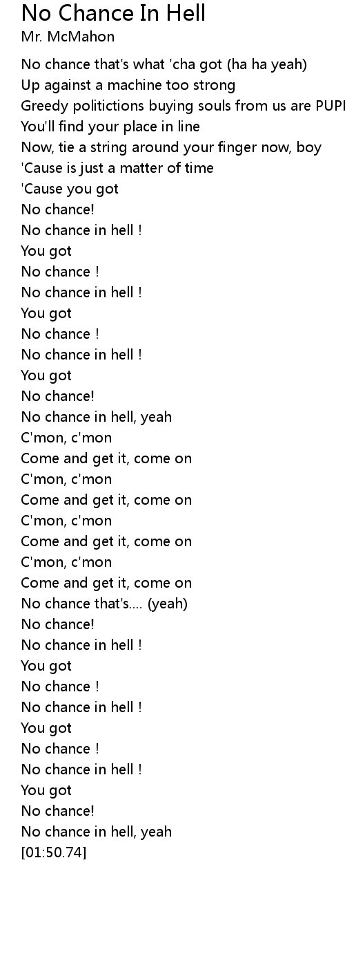 | [00:58.80] | No chance in hell, yeah |