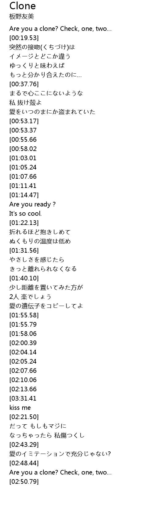 | [02:51.03][00:53.37] | I wanna be a clone |