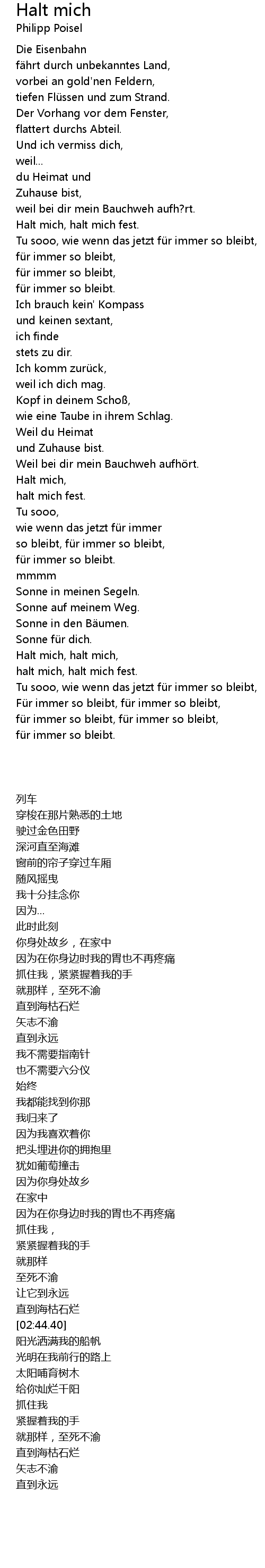 | [02:35.38] | so bleibt, fü r immer so bleibt, |