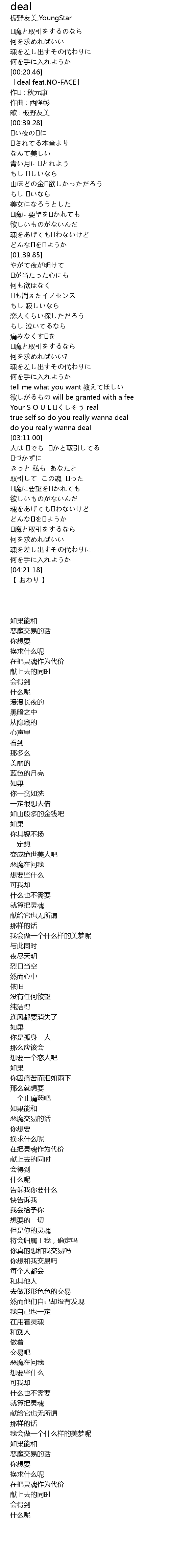 | [00:23.28] | 「deal feat.NO-FACE」 |