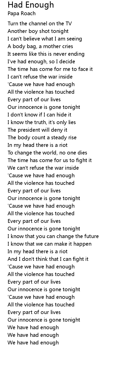 'Cause we have had enough |