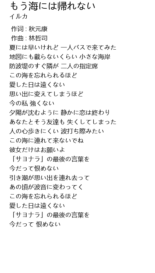 | 歌曲 | もう海には帰れない |