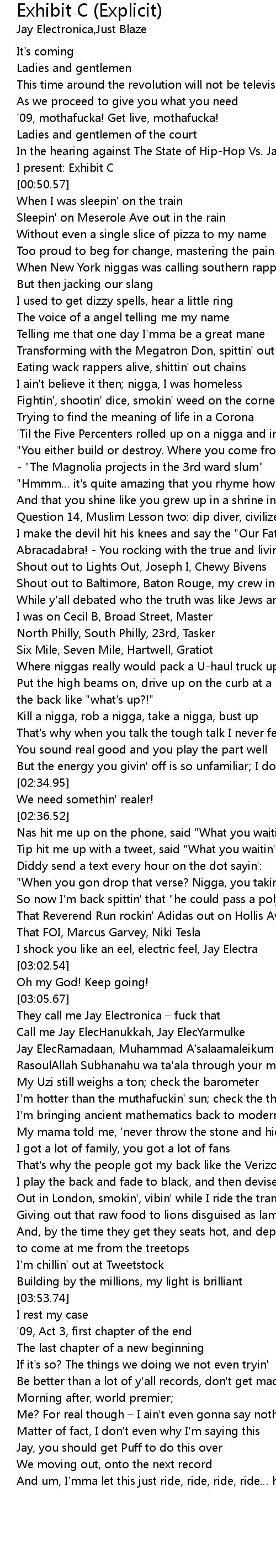 | [03:05.88] | They call me Jay Electronica – fuck that |