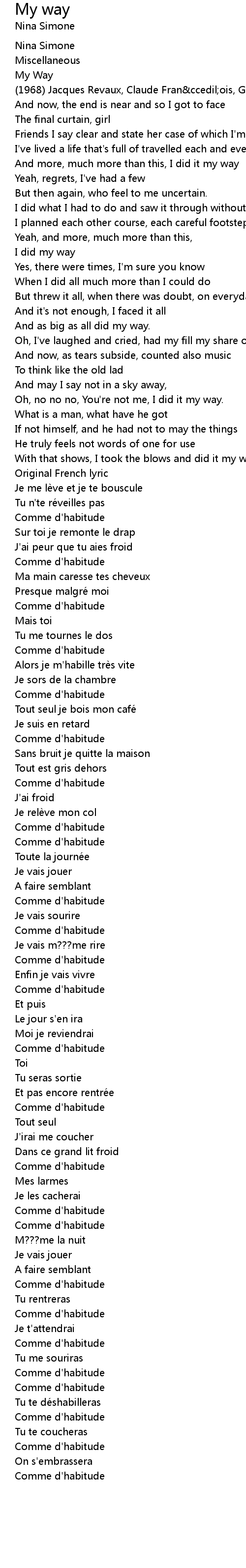 | I' ve lived a life that' s full of travelled each and every highway | |