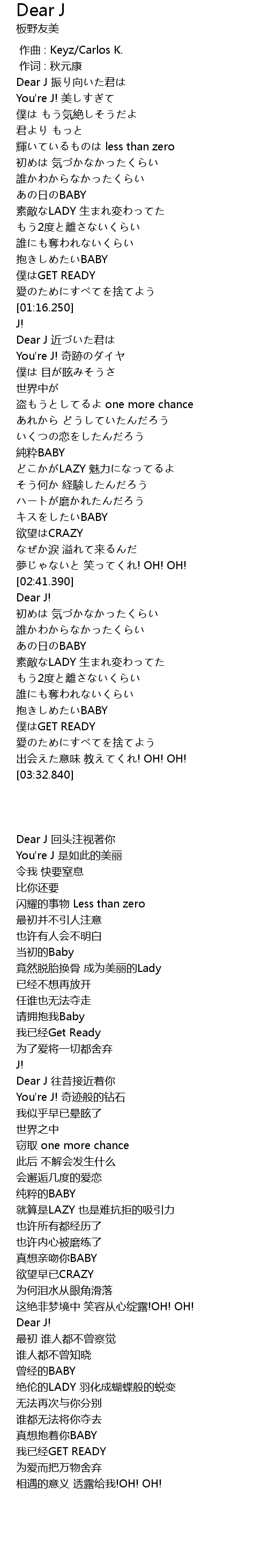 | [01:22.570] | Dear J 往昔接近着你 |