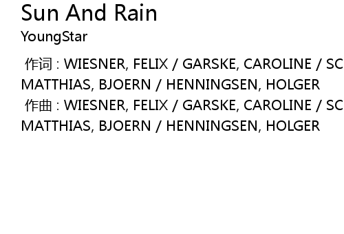 | [00:00.000] | 作曲 : WIESNER, FELIX / GARSKE, CAROLINE / SCHITTEK, GORDON / MATTHIAS, BJOERN / HENNINGSEN, HOLGER |