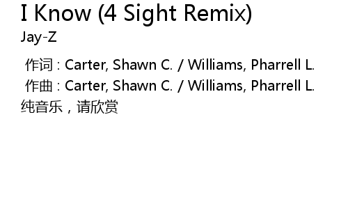 | 歌曲 | I Know (4 Sight Remix) |