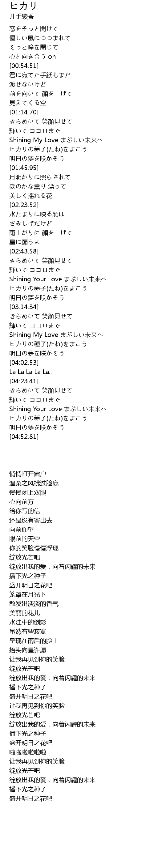 | [04:33.29] | Shining Your Love まぶしい未来へ |
