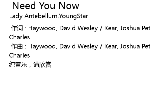 | [00:01.000] | 作曲 : Haywood, David Wesley / Kear, Joshua Peter / Kelley, Charles |
