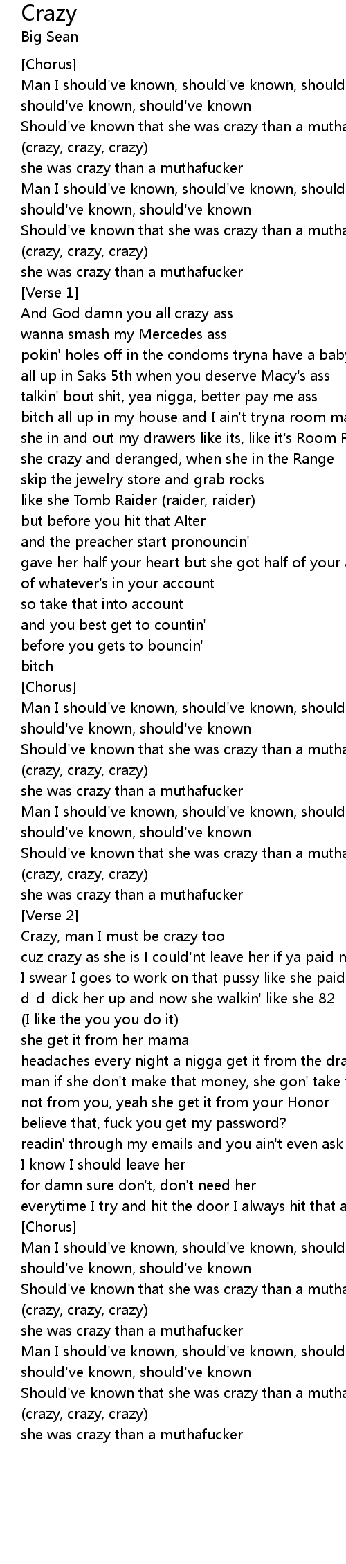 Should've known that she was crazy than a muthafucker