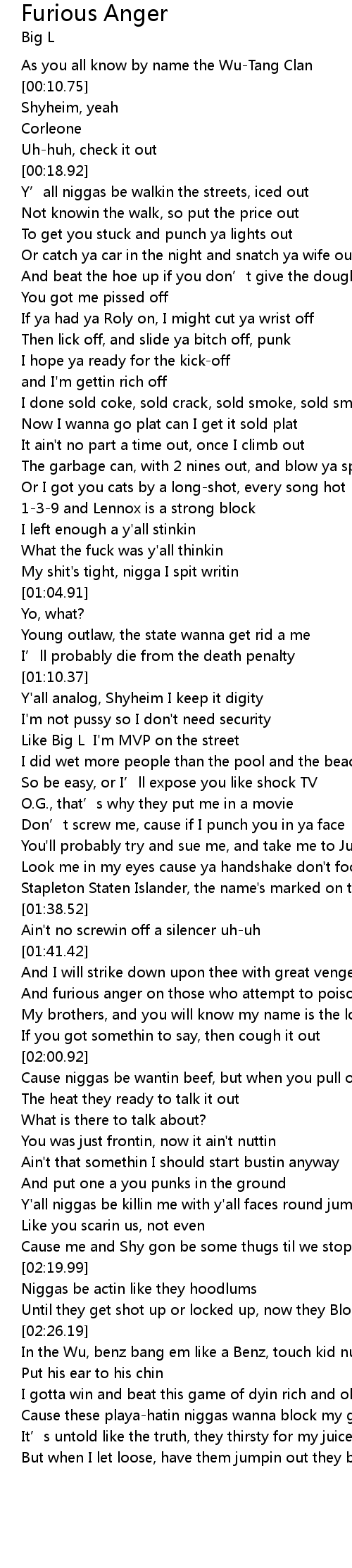 | [02:26.75] | In the Wu, benz bang em like a Benz, touch kid nuttin thin |