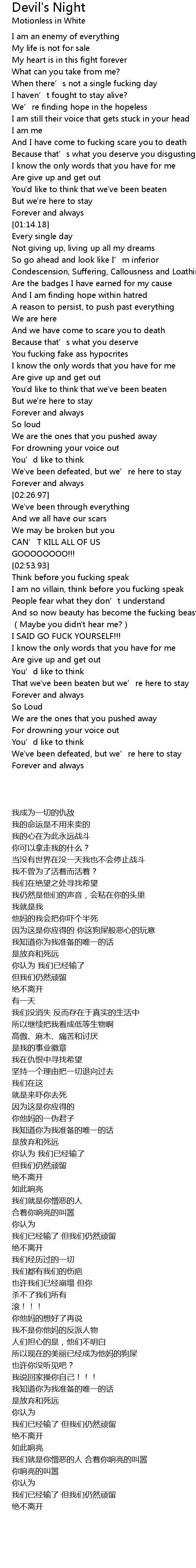 | [01:32.43] | Condescension, Suffering, Callousness and Loathing |