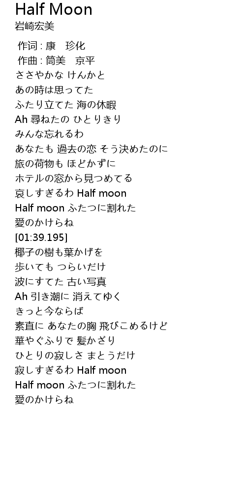 | [01:28.183] | Half moon ふたつに割れた |