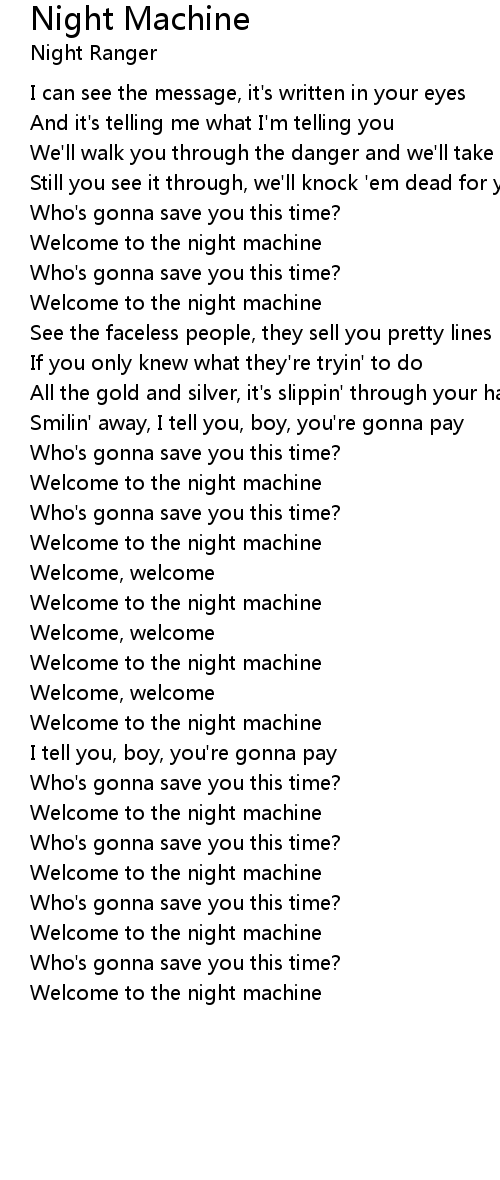 Welcome to the night machine |