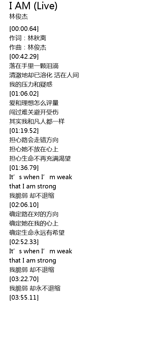 | [03:00.52] | that I am strong |