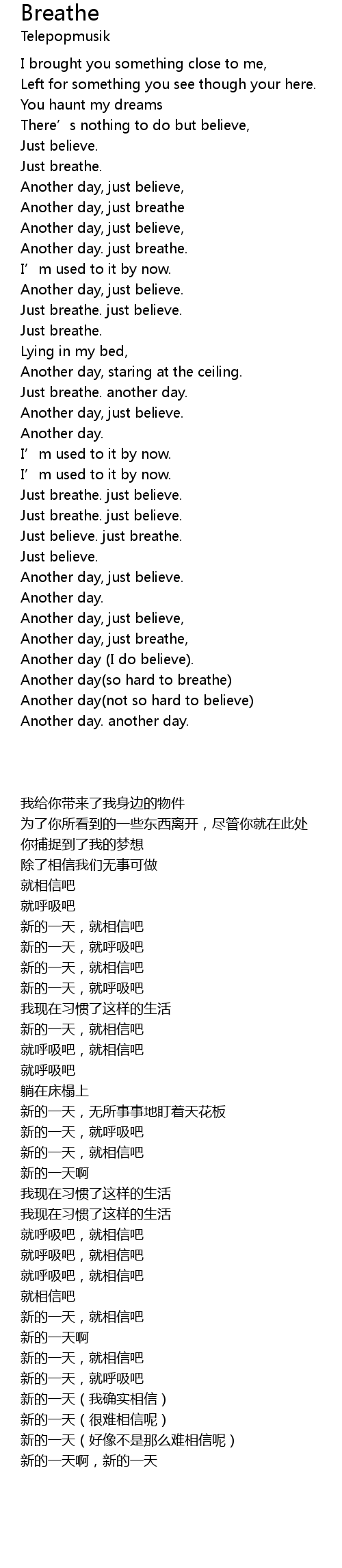 | [01:49.100] | Just breathe. just believe. |
