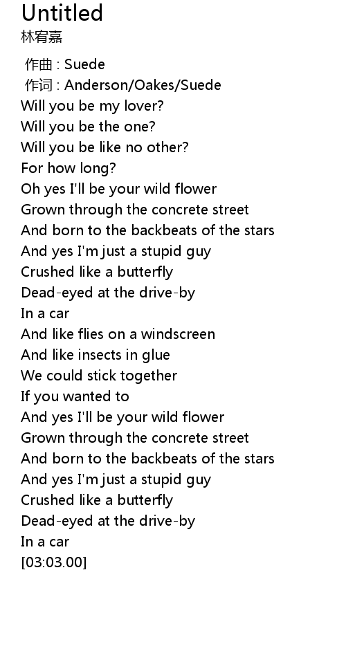 | [00:01.00] | 作词 : Anderson/Oakes/Suede |