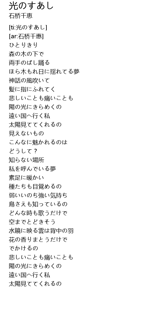 | [00:24.576] | ほら木もれ日に揺れてる夢 |
