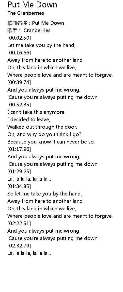 | [00:02.50] | gē qǔ míng chēng: Put Me Down |