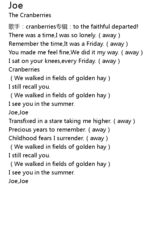 | [01:28.69] | Joe, Joe |