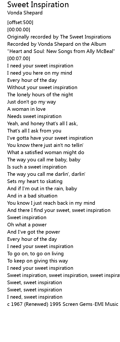 Sweet inspiration, sweet inspiration, sweet inspiration |